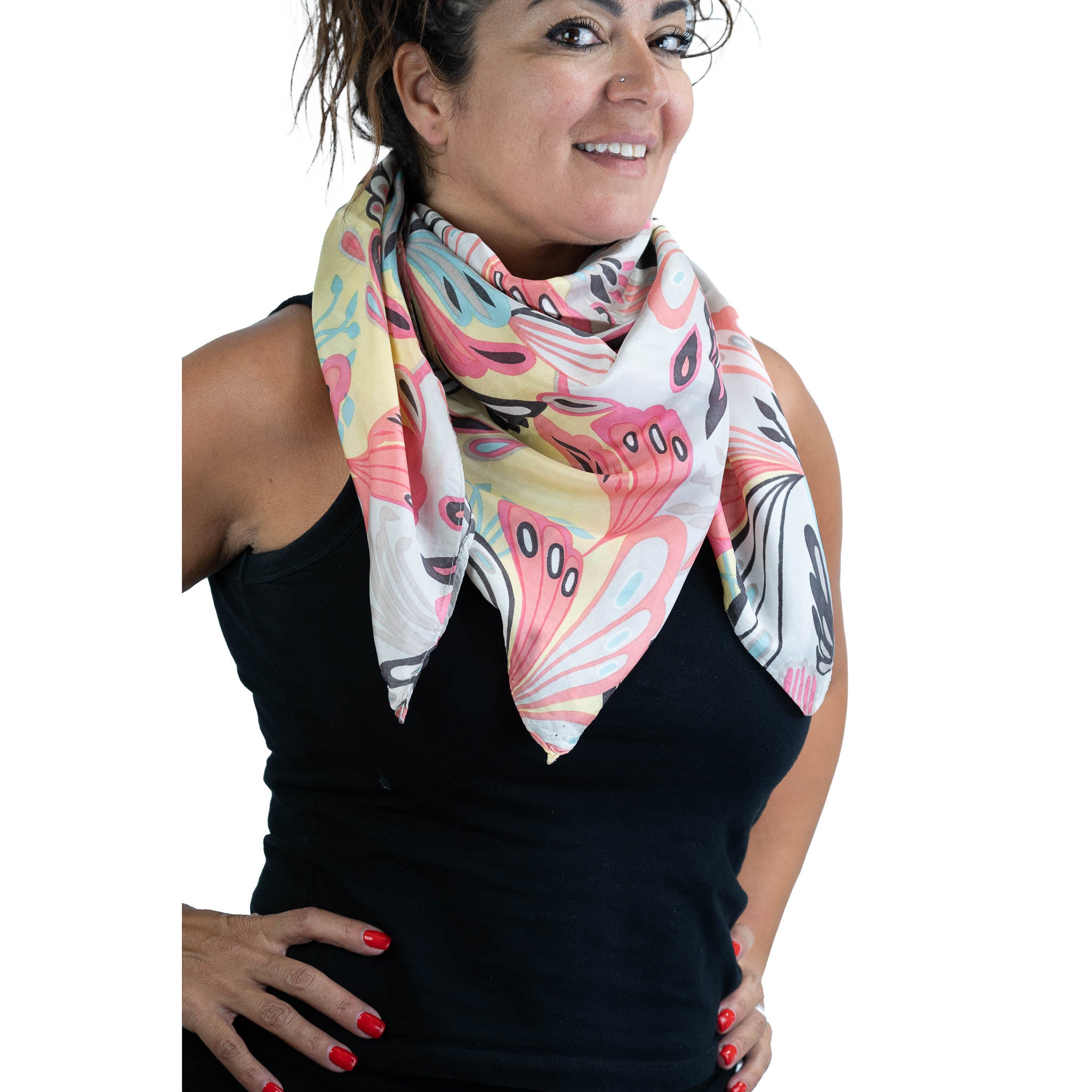 Elevate your style with our Carnival Silk Scarf! Handmade in India with luxurious silk, its chic print adds a touch of elegance to any outfit. Feel the softness against your skin and turn heads with this must-have accessory.