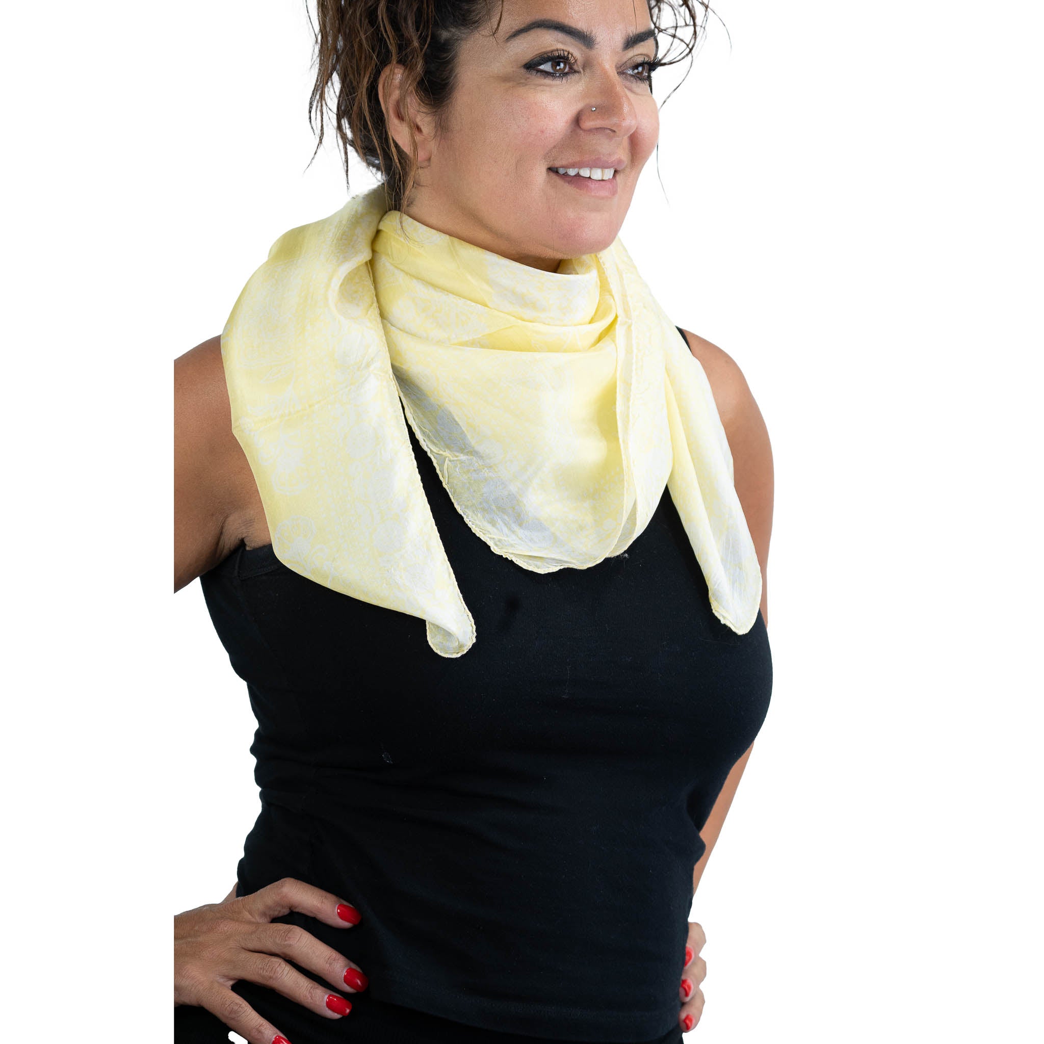 Elevate your style with our Sunshine Silk Scarf! Handmade in India with luxurious silk, its chic print adds a touch of elegance to any outfit. Feel the softness against your skin and turn heads with this must-have accessory.