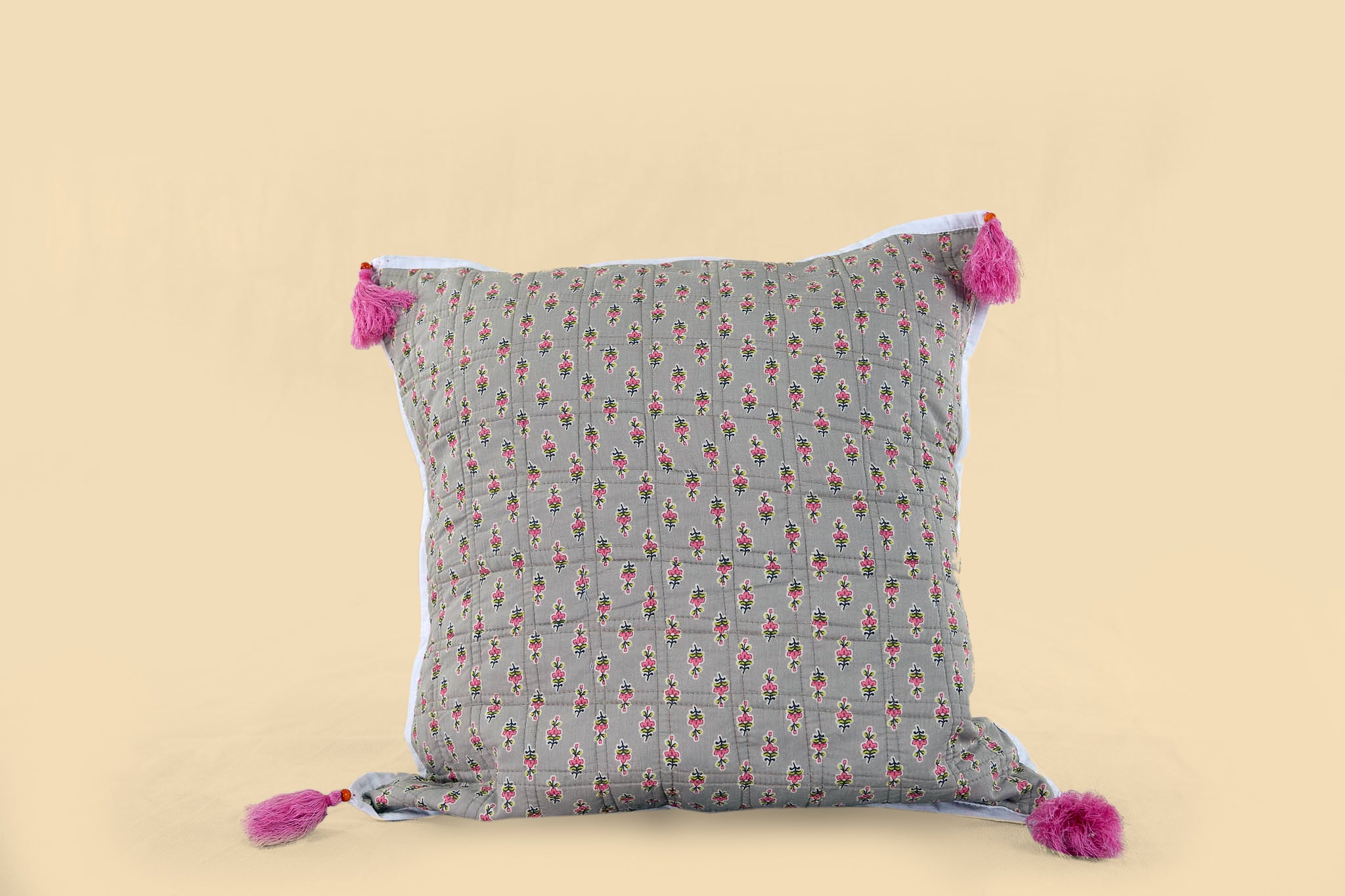 Enhance your home décor with our chic Nagaur cushion cover, adorned with colorful block prints and vibrant tassels. Inspired by India's cultural richness, these minimalist designs infuse a touch of tradition into any space. Elevate your living area with simplicity and cultural flair.