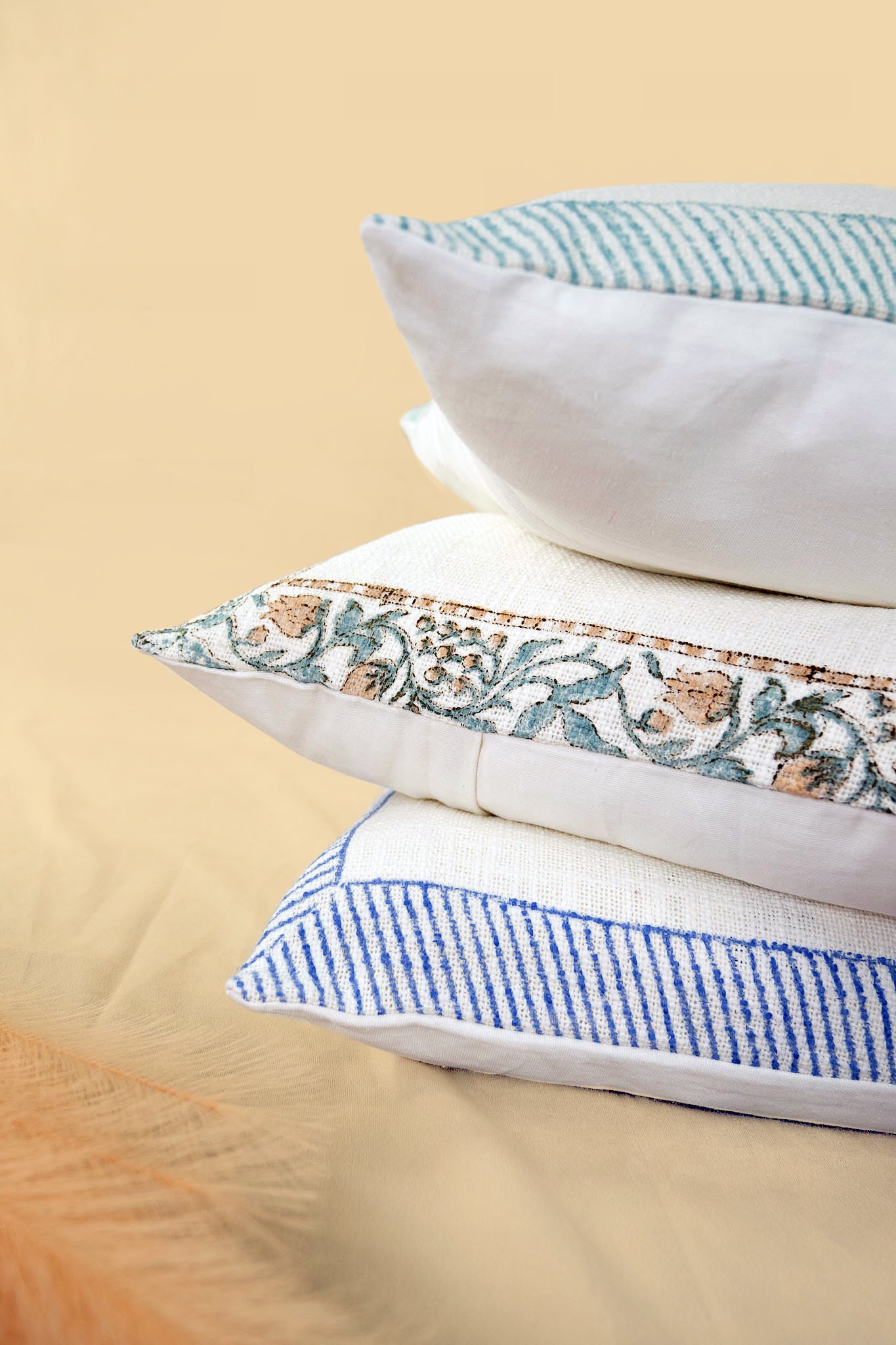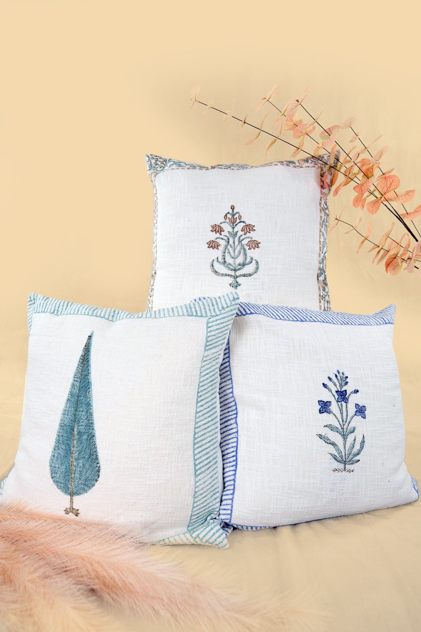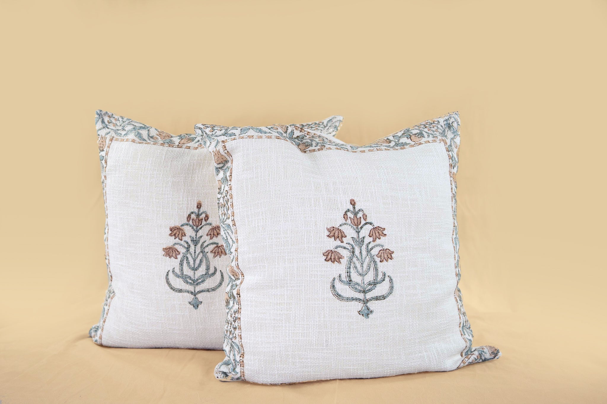 Enhance your home décor with our chic Sirohi cushion cover, adorned with colorful block prints. Inspired by India's cultural richness, these minimalist designs infuse a touch of tradition into any space. Elevate your living area with simplicity and cultural flair.