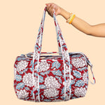 Travel light, carry culture – meet the Quilted Cotton Duffel Bag.