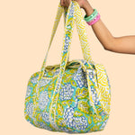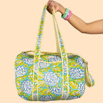 Travel light, carry culture – meet the Quilted Cotton Duffel Bag.