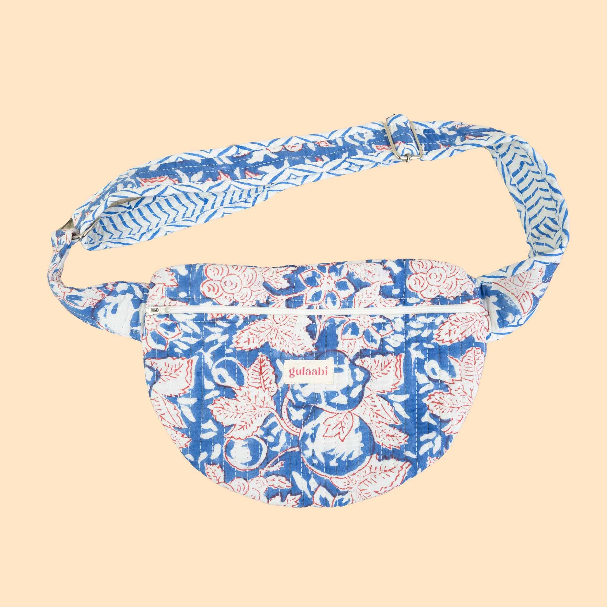 Introducing our Jalsa fanny pack. Handmade with quilted cotton, this spacious and stylish accessory is perfect for any outing. Keep your essentials close and secure with this unique and charming block printed fanny pack.