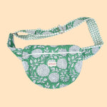 Introducing our Mogra fanny pack. Handmade with quilted cotton, this spacious and stylish accessory is perfect for any outing. Keep your essentials close and secure with this unique and charming block printed fanny pack.