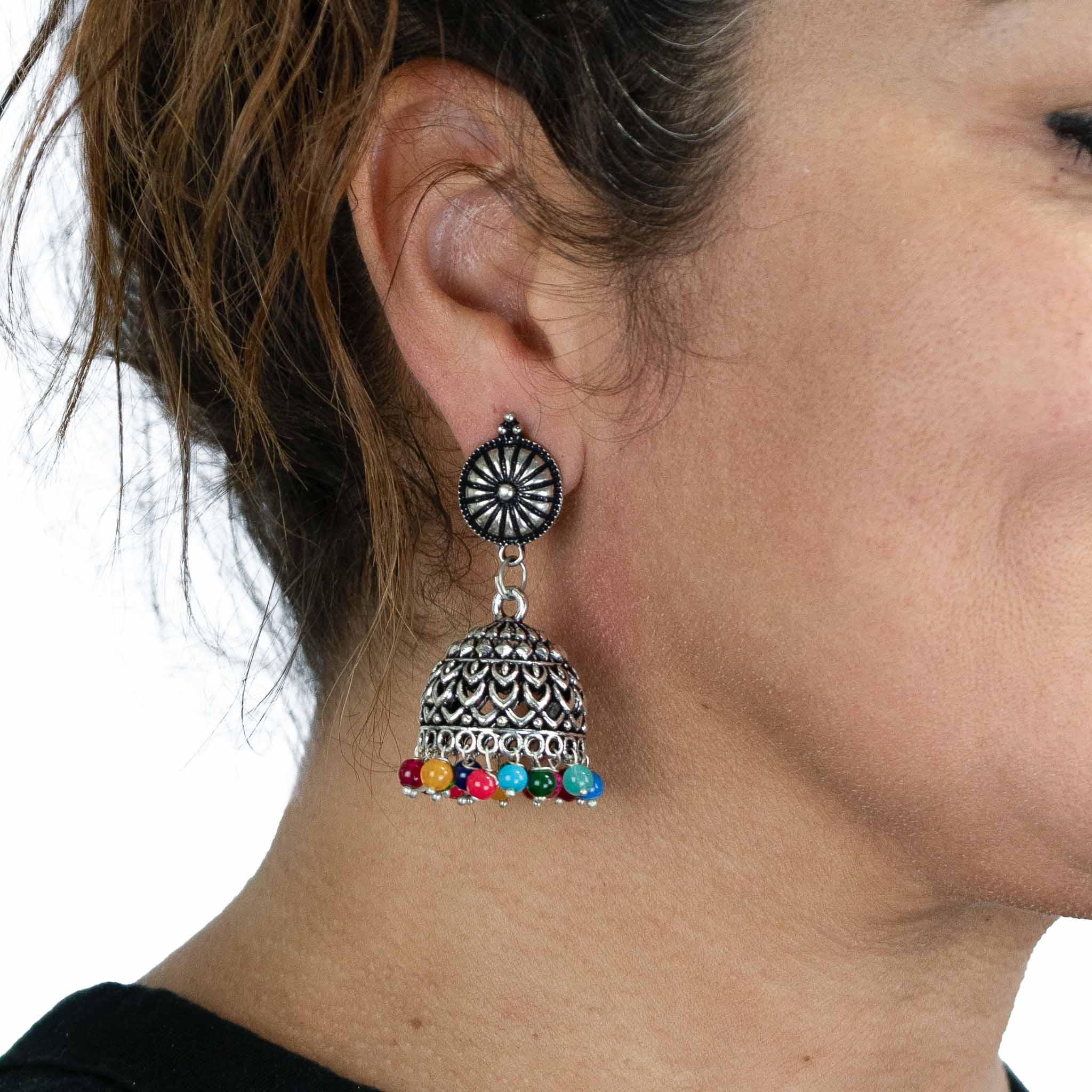 These Leah earrings are a quirky addition to any jewelry collection. Made with oxidized metal and inspired by traditional Indian designs, they add a touch of uniqueness to any outfit. Shine on with these fun and stylish earrings!
