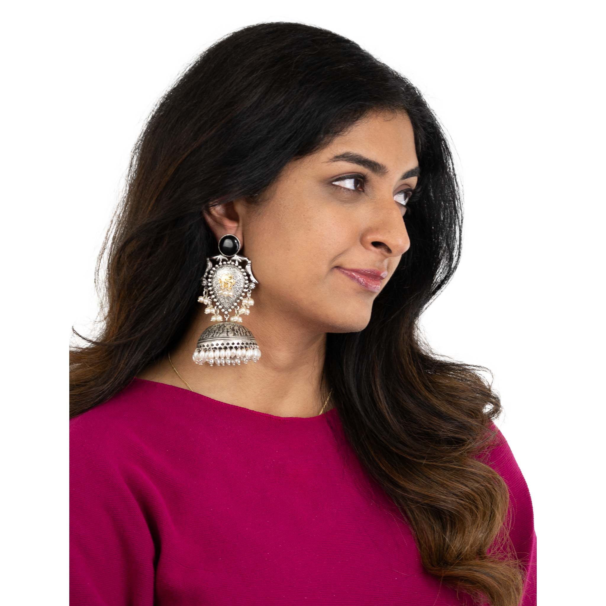 These Mishri earrings are a quirky addition to any jewelry collection. Made with oxidized metal and inspired by traditional Indian designs, they add a touch of uniqueness to any outfit. Shine on with these fun and stylish earrings!