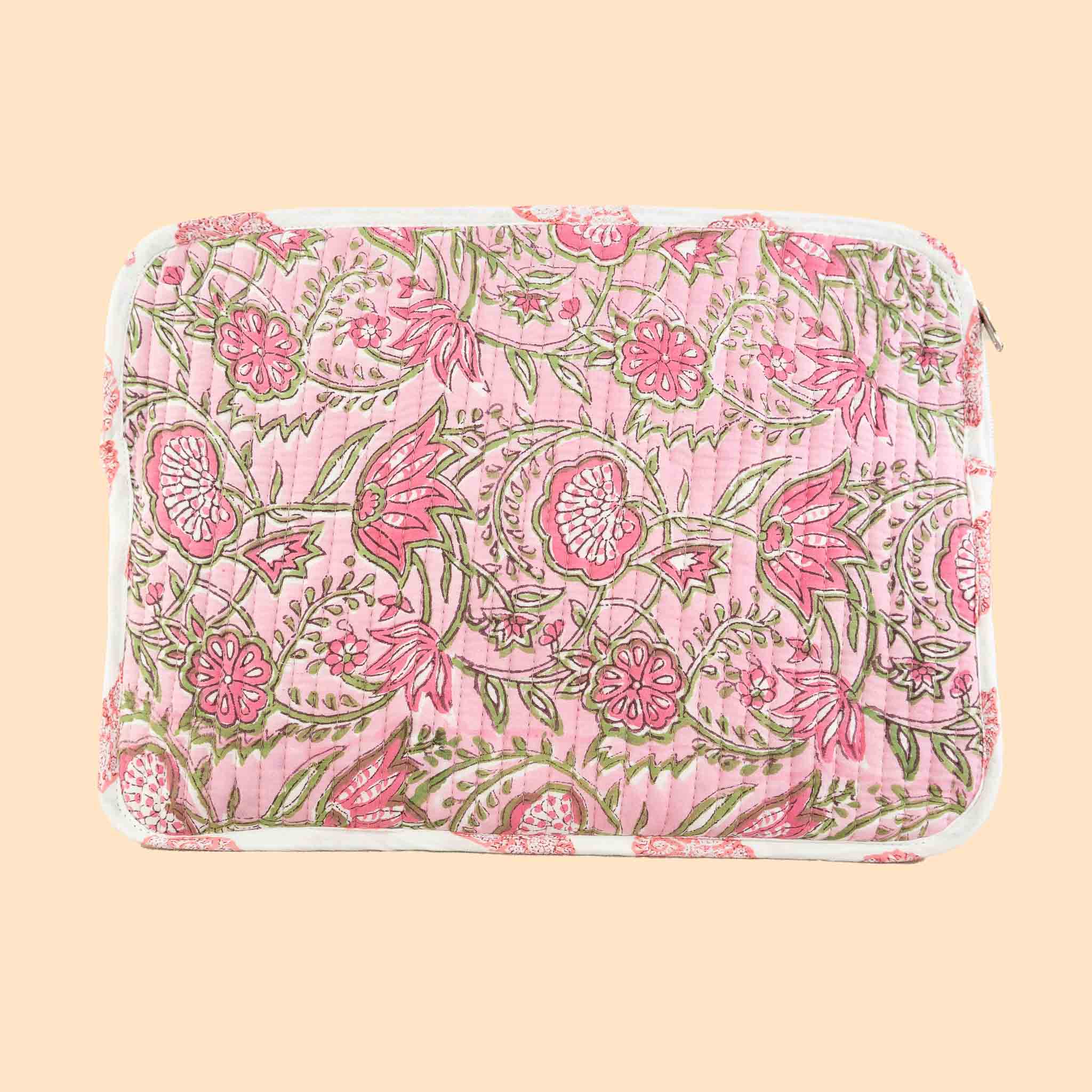 Chandan Laptop Sleeve is a stylish and functional accessory for your laptop. Made of cotton with a beautiful blockprint design, it provides both protection and style. Carry your laptop, journal and other accessories in style with this unique sleeve.