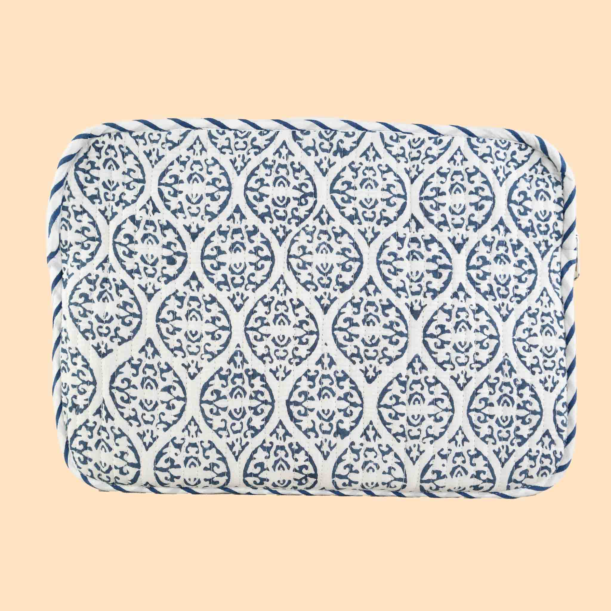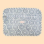 Dhara Laptop Sleeve is a stylish and functional accessory for your laptop. Made of cotton with a beautiful blockprint design, it provides both protection and style. Carry your laptop, journal and other accessories in style with this unique sleeve.