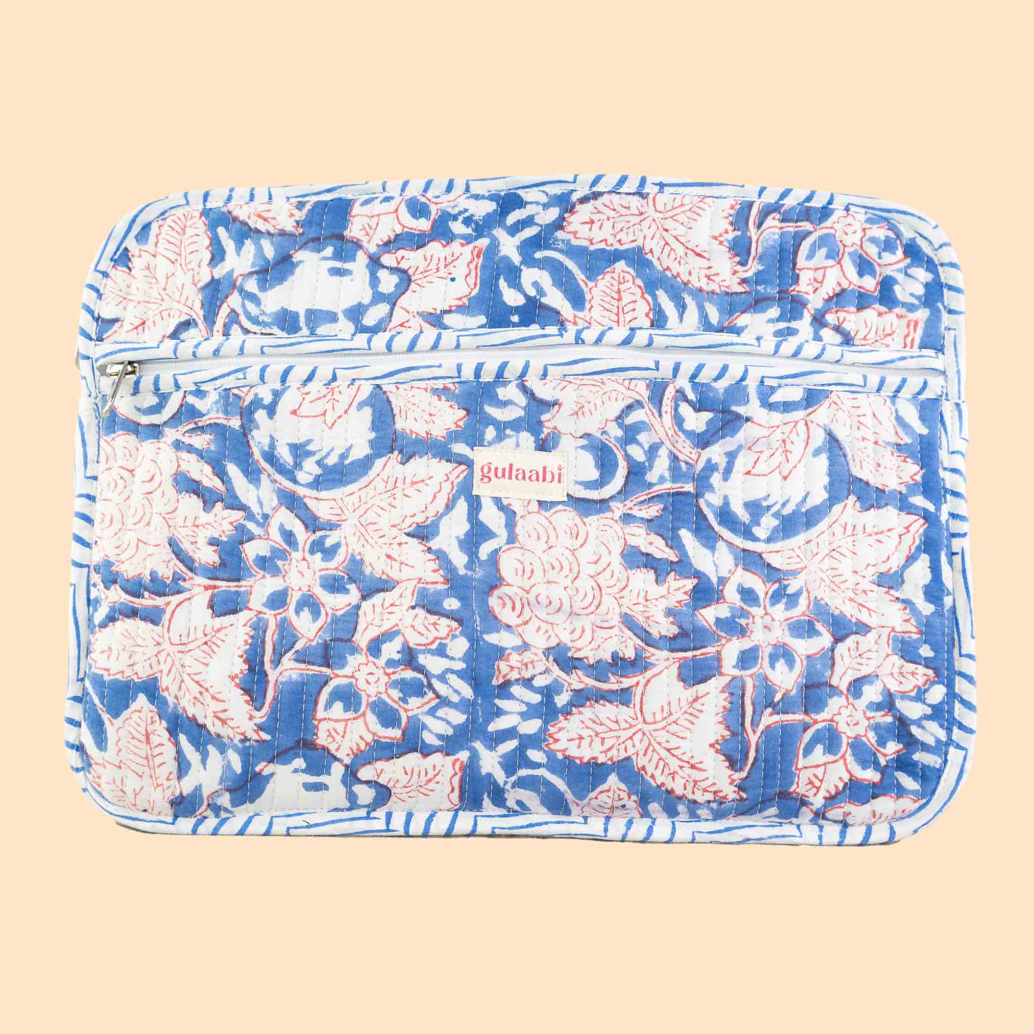 Jalsa Laptop Sleeve is a stylish and functional accessory for your laptop. Made of cotton with a beautiful blockprint design, it provides both protection and style. Carry your laptop, journal and other accessories in style with this unique sleeve.