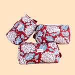 Stay organized in style with this 3-piece quilted cotton pouch set — perfect for storing makeup, toiletries, skincare, and travel essentials. Handcrafted in India, each pouch is adorned with beautiful block-printed patterns and detailed quilting, offering a blend of traditional artistry and everyday functionality.