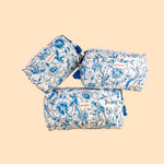 Stay organized in style with this 3-piece quilted cotton pouch set — perfect for storing makeup, toiletries, skincare, and travel essentials. Handcrafted in India, each pouch is adorned with beautiful block-printed patterns and detailed quilting, offering a blend of traditional artistry and everyday functionality.