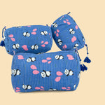 Introducing our versatile Panda Party 3-piece makeup/toiletry pouch set, a must-have for organizing your essentials, makeup, and more. Each set includes small, medium, and large pouches, meticulously crafted in India with exquisite block print designs and quilted detailing. Stay stylishly organized on the go with this elegant set, blending traditional charm with modern functionality.