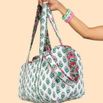 Travel light, carry culture – meet the Quilted Cotton Duffel Bag.