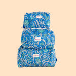 Stay organized in style with this 3-piece quilted cotton pouch set — perfect for storing makeup, toiletries, skincare, and travel essentials. Handcrafted in India, each pouch is adorned with beautiful block-printed patterns and detailed quilting, offering a blend of traditional artistry and everyday functionality.