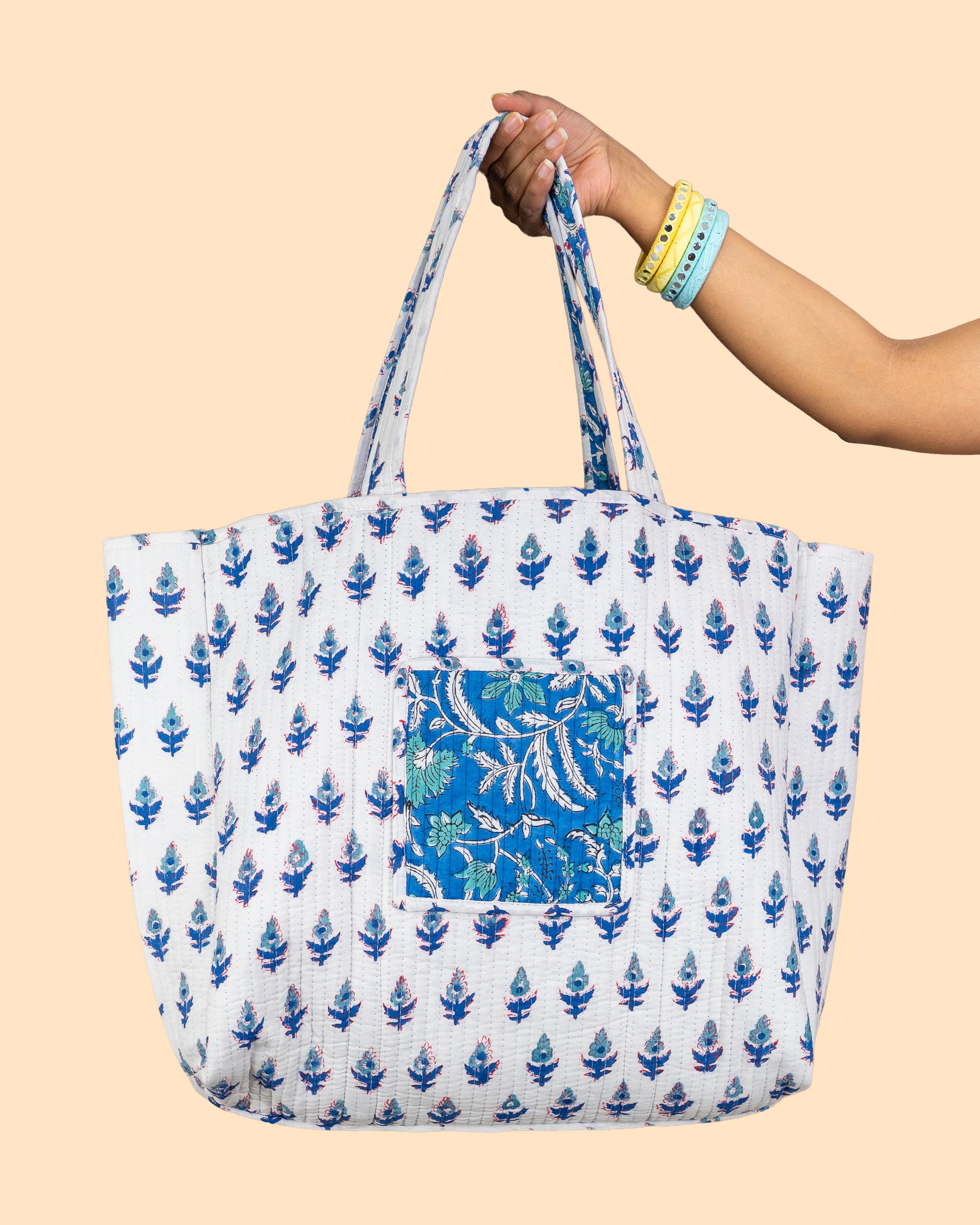 Discover the perfect blend of traditional craftsmanship and modern utility with the Sapphire Tote Bag . Handmade in Rajasthan, India, this tote celebrates timeless artistry in a functional everyday design.